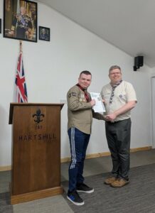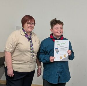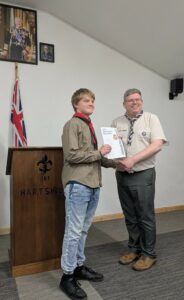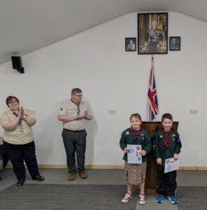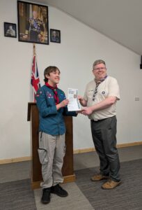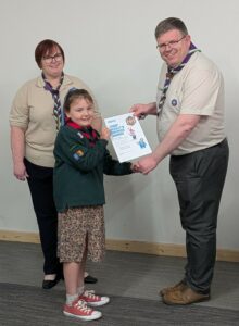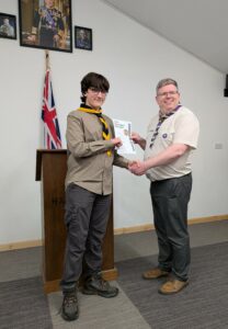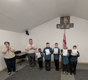 On Friday 20th March we welcomed our County Lead Volunteer Paul Wakely and District Lead Volunteer Sam Marshall, to our scout hut to award some of our young people there very hard earned challenge awards.